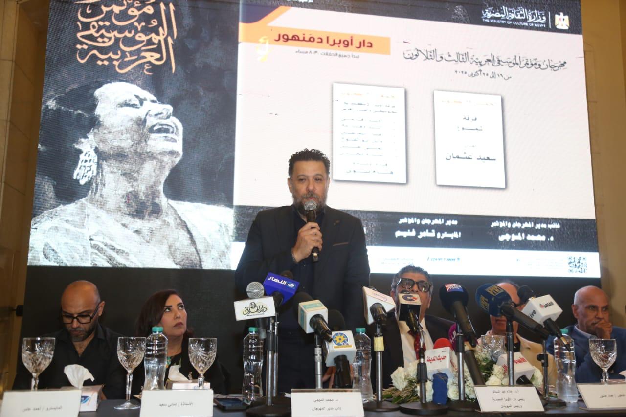 وخلاله تم إستعراض الفعاليات التى تتواصل لمده 10 أيام متتالية في الفترة من 16 إلى 25 أكتوبر المقبل وتضم 41 حفل غنائى وموسيقي بمشاركة 83 فنان هم امال ماهر، مدحت صالح، وائل جسار( لبنان)، هانى شاكر، عمر خيرت، محمد الحلو، ريهام عبد الحكيم، على الحجار، مروة ناجى، محمد ثروت، مى فاروق، سوما، صابر الرباعى (تونس)، سهيلة بهجت، فؤاد زبادى (المغرب)، نادية مصطفى، حنين الشاطر، حسام حسنى، كنزى، فرح الموجى، أسماء كمال، عمرو سليم، ايات فاروق، محمد حسن، مؤمن خليل، رحاب مطاوع، احمد عفت، ايناس عز الدين، مى حسن، منار سمير،حنان عصام، نهاد فتحى، رحاب عمر، محمد الطوخى، نهى حافظ، وليد حيدر، ياسر سليمان، غادة ادم، محمود عبد الحميد، عبير أمين، عصام محمود، داليا عبد الوهاب، ايه عبد الله، يحيى عبد الحليم، احمد سعيد، هند النحاس، ابراهيم رمضان، ريم حمدى، حنان الخولى، محيى صلاح، أحمد الوزيرى، أحمد صبرى، محمد شوقى، محمد عبد الحميد، اشرف زيدان، حاتم زيدان، ابراهيم فاروق، تامر نجاح، ايهاب ندا، سماح عباس، هبة عادل، أنغام مصطفى، محمد طارق، ولاء طلبة، أحمد رجب، سامح منير، أحمد عصام، الاء ايوب، أحمد محسن، رضوى سعيد، محمد متولى، أميرة أحمد، تامر عبد النبى، أشرف وليد، محمد الخولى، ياسر سعيد، سعيد عثمان، أمير رفاعى، السيد وهب الله، هبة إسماعيل، وائل أبو الفتوح، يمنى حسن، سارة مجدى.