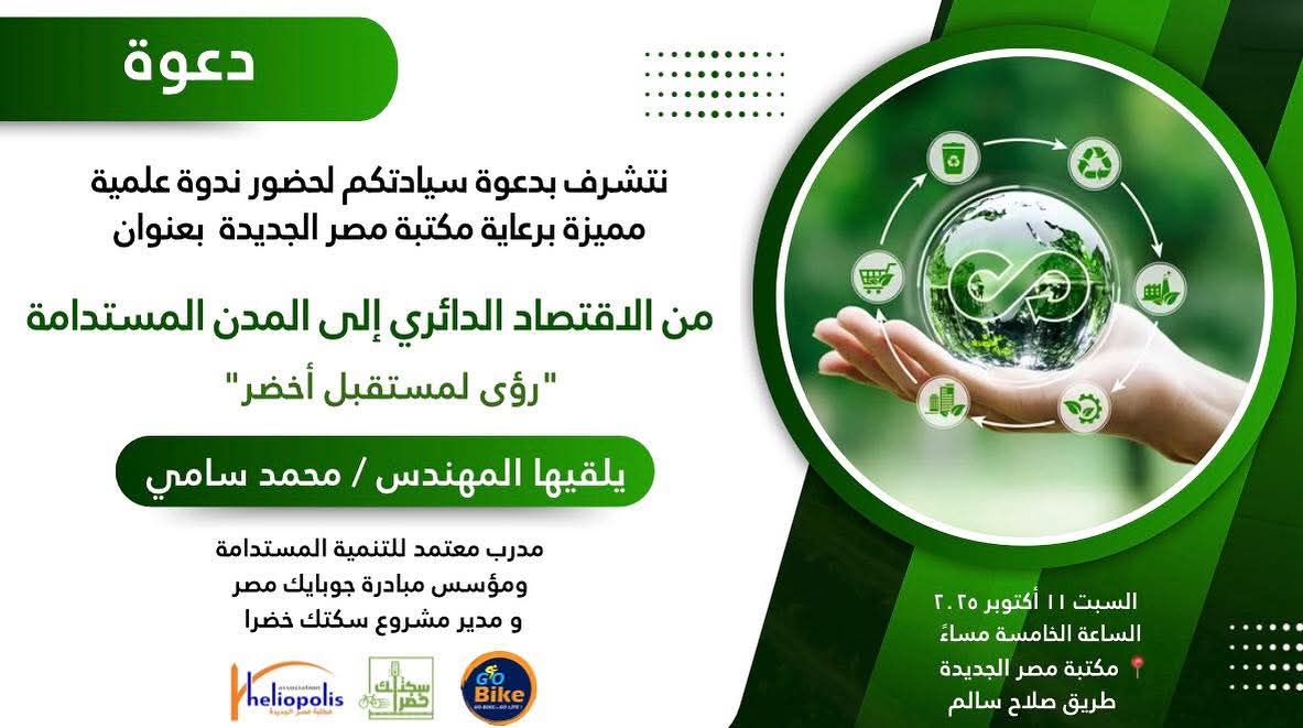 “من الاقتصاد الدائري إلى المدن المستدامة: رؤى لمستقبل أخضر” ندوة في مكتبة مصر الجديدة