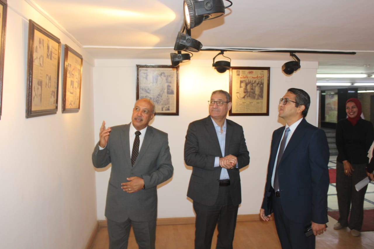 قبل انطلاق فعاليات الندوة، اصطحب الأستاذ الدكتور أسامة طلعت – رئيس الهيئة العامة لدار الكتب والوثائق القومية، والدكتورة رشدية ربيع – رئيس دار الوثائق القومية – الضيوف في جولة داخل معرض الدوريات التاريخية الذي أقامته دار الوثائق، ويضم مجموعة نادرة من مانشيتات الصحف القومية الصادرة خلال أيام حرب أكتوبر، استعرض المعرض كيف وثقت الصحافة القومية لحظة العبور المجيدة، من خلال العناوين الأولى التي أعلنت النصر، والصور الأصلية لبطولات المقاتلين على الجبهة، إلى جانب عدد من أعداد الصحف التي رصدت تفاعلات النصر في الداخل والخارج، لتجسد الذاكرة الصحفية الحية لتلك الأيام الخالدة في تاريخ الوطن.