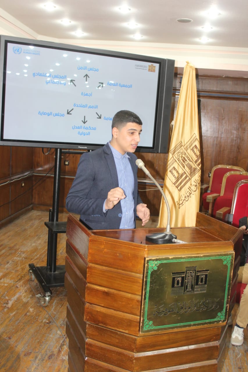 في إطار اهتمام وزارة الثقافة بنشر الوعي المجتمعي وتعزيز ثقافة حقوق الإنسان، تنظم دار الكتب والوثائق القومية، برئاسة الأستاذ الدكتور أسامة طلعت، فعالية ثقافية بمناسبة الاحتفال باليوم العالمي لحقوق الإنسان، نظمت قاعة الأمم المتحدة بدار الكتب ندوة تثقيفية موسعة بعنوان “الإنسان أولًا.. نحو عالم أكثر عدلًا وإنصافًا”، بقاعة علي مبارك..