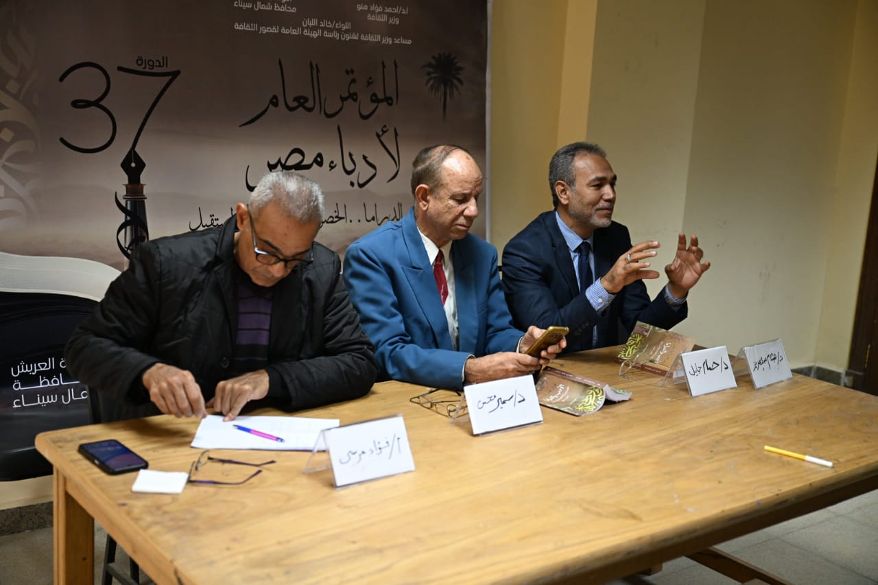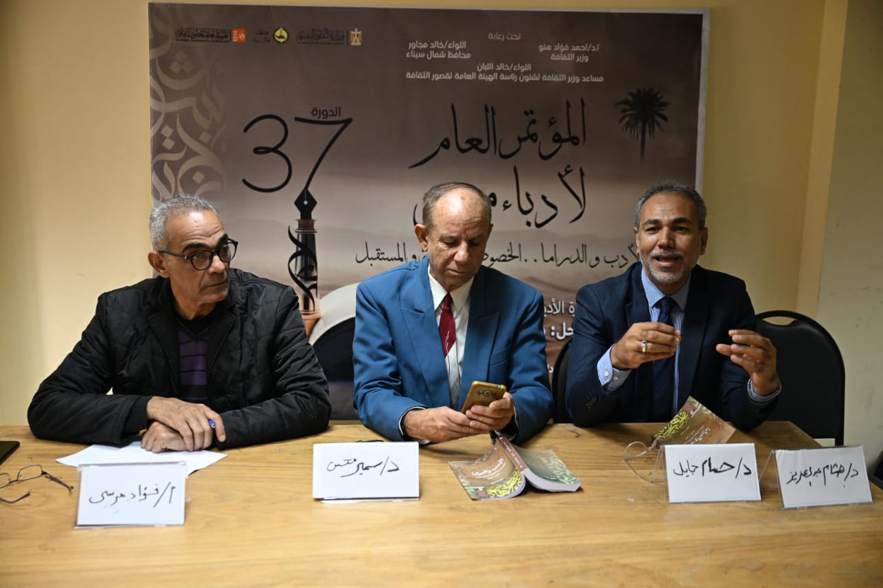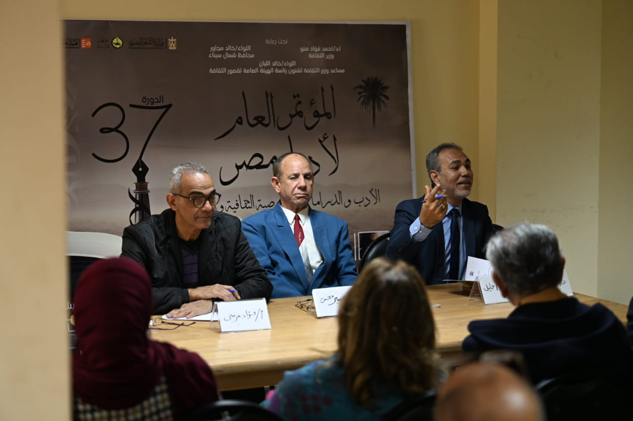 كما شهدت الجلسة مناقشة البحث الثاني بعنوان “في الأدب السيناوي المعاصر”، دراسة نقدية قدمها الدكتور سمير محسن، تناول خلالها ملامح الإبداع الأدبي لدى أدباء شمال سيناء، مستعرضا نماذج شعرية لثلاثة شعراء هم: صلاح فاروق، ومحمد علي سلامة، وريم مرشد.
