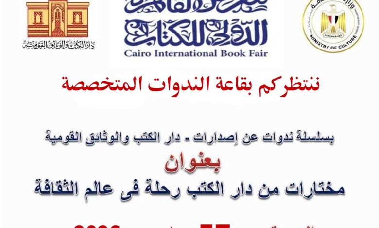 دار الكتب والوثائق القومية تشارك في معرض القاهرة الدولي للكتاب الـ 57 بسلسلة ندوات فكرية وتراثية
